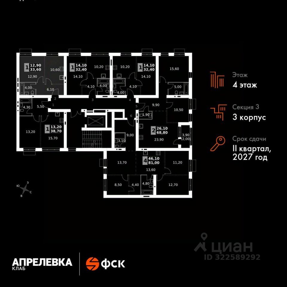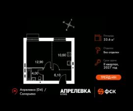 Продаётся 1-к квартира номер 79 общей площадью 33.6 кв.м на 4-м этаже 5 этажного дома. Без отделки.