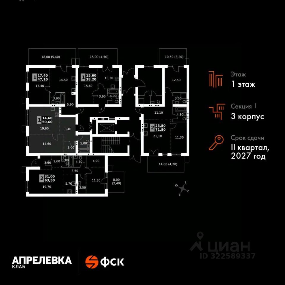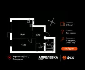 Продаётся 2-к квартира номер 2 общей площадью 50.6 кв.м на 1-м этаже 5 этажного дома. Без отделки.