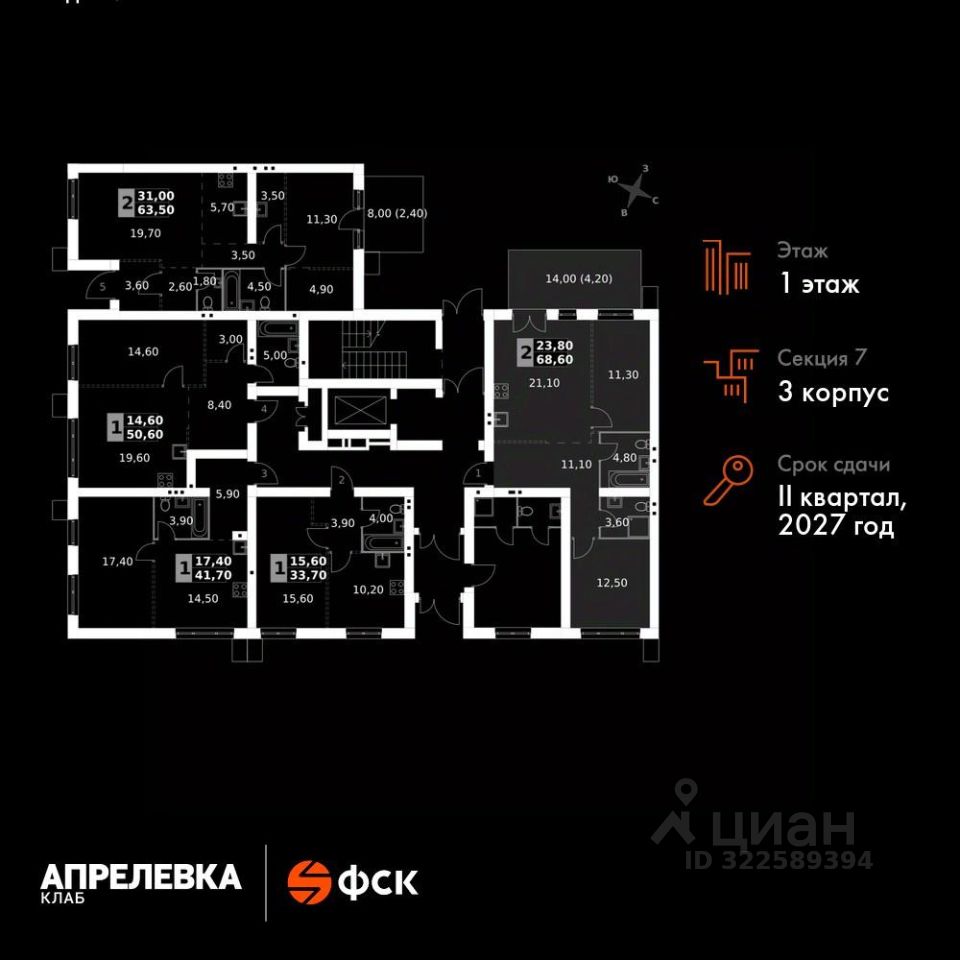 Продаётся 3-к квартира номер 166 общей площадью 68.6 кв.м на 1-м этаже 5 этажного дома. Без отделки.