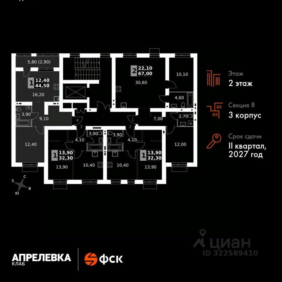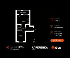 Продаётся 2-к квартира номер 201 общей площадью 44.5 кв.м на 2-м этаже 5 этажного дома. Без отделки.