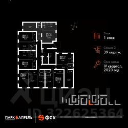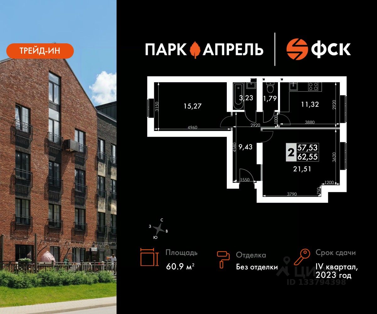 Продаётся 2-к квартира номер 38 в сданном корпусе общей площадью 60.9 кв.м на 1-м этаже 4 этажного дома.