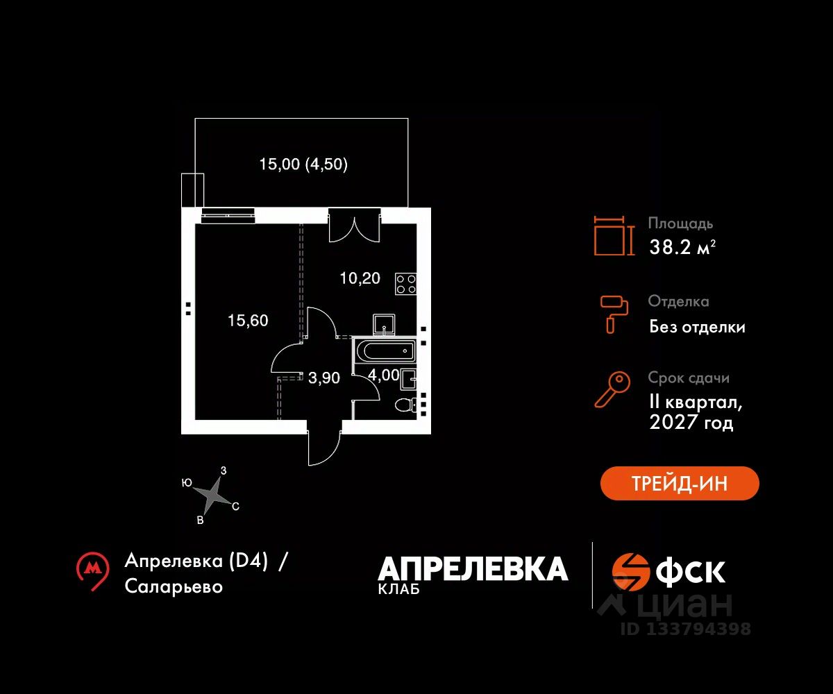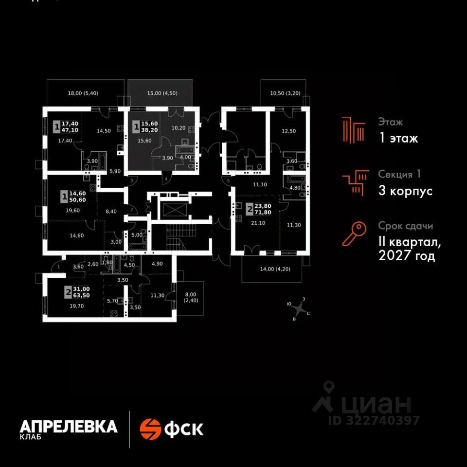 Продаётся 1-к квартира номер 4 общей площадью 38.2 кв.м на 1-м этаже 5 этажного дома. Без отделки.