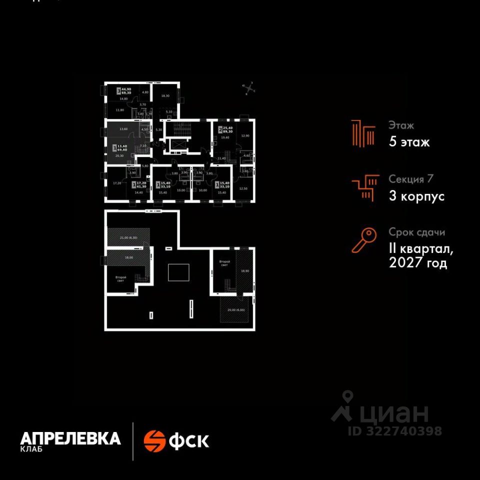 Продаётся 1-к квартира номер 193 общей площадью 69.8 кв.м на 5-м этаже 5 этажного дома. Без отделки.