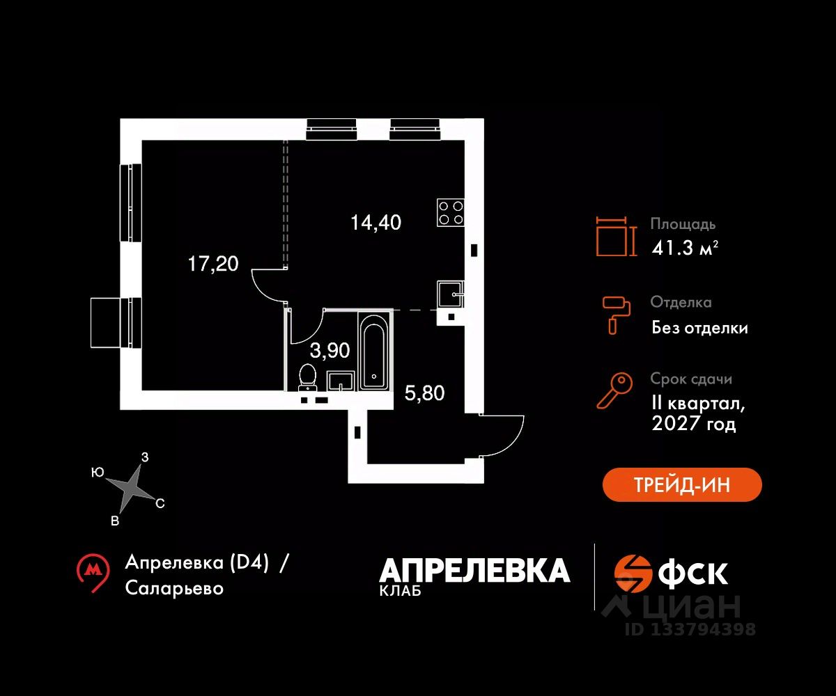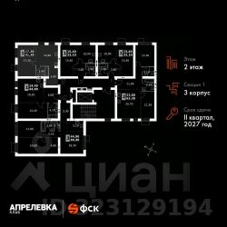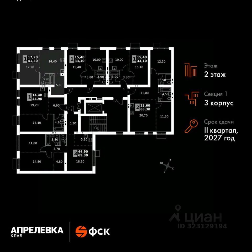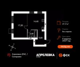 Продаётся 1-к квартира номер 8 общей площадью 41.3 кв.м на 2-м этаже 5 этажного дома. Без отделки.