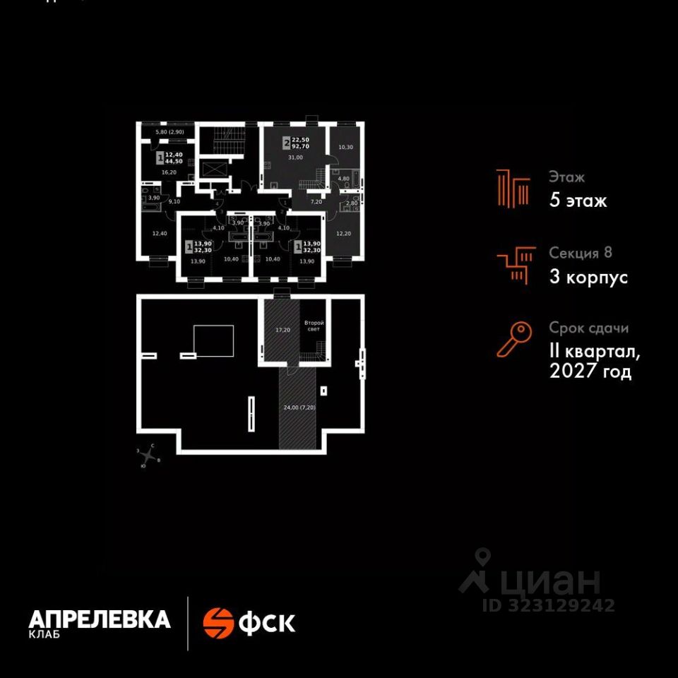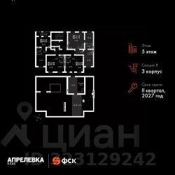Продаётся 2-к квартира номер 210 общей площадью 92.7 кв.м на 5-м этаже 5 этажного дома. Без отделки.