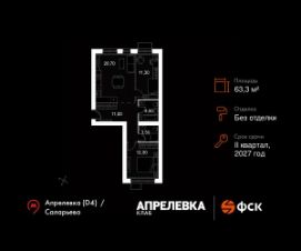 Продаётся 3-к квартира 185 общей площадью 63.3 кв.м на 4-м этаже 5 этажного дома. Без отделки.