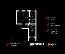 Продаётся 3-к квартира 200 общей площадью 67 кв.м на 2-м этаже 5 этажного дома. Без отделки.
