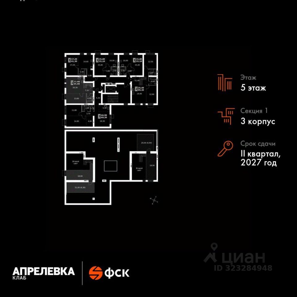 Продаётся 1-к квартира номер 25 общей площадью 69.8 кв.м на 5-м этаже 5 этажного дома. Без отделки.