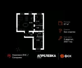 Продаётся 3-к квартира 202 общей площадью 67 кв.м на 3-м этаже 5 этажного дома. Без отделки.