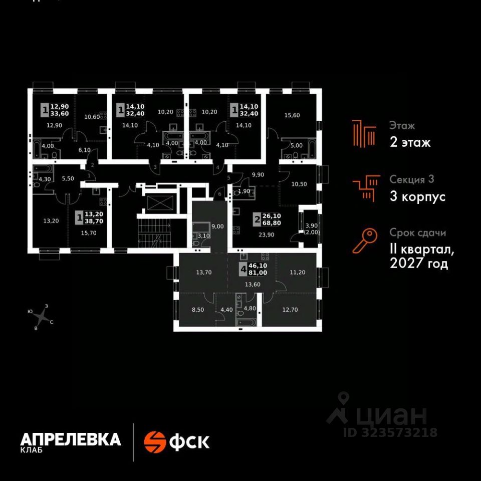 Продаётся 4-к квартира номер 71 общей площадью 81 кв.м на 2-м этаже 5 этажного дома. Без отделки.