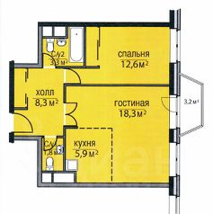 - Общая площадь - 51.2 м2.