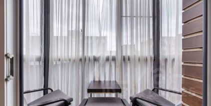 В прихожей установлен шкаф-купе. В спальне-гардероб. Квартира полностью оснащена всей необходимой мебелью. В кухне-гостинной установлен кондиционер.