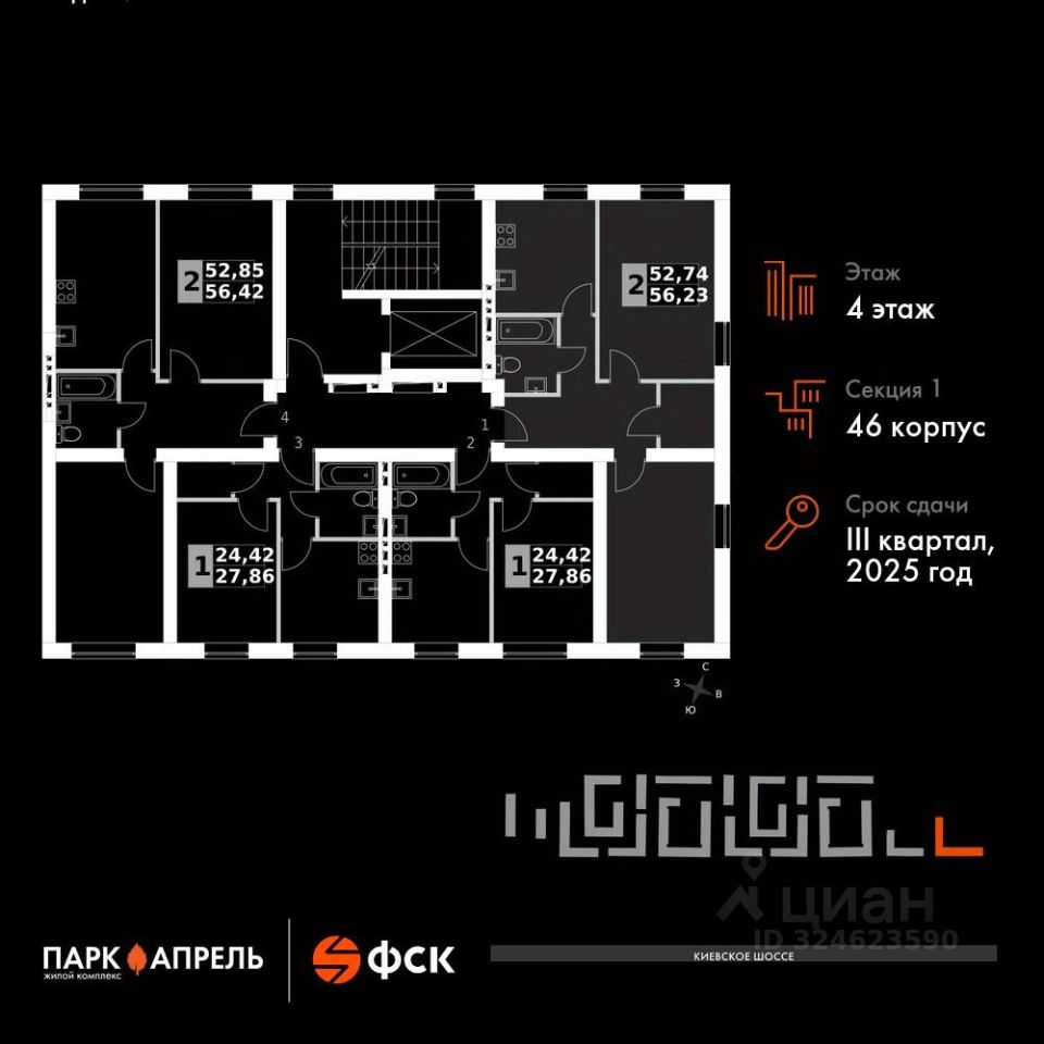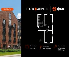 Продаётся 2-к квартира номер 28 в сданном корпусе общей площадью 56.23 кв.м на 4-м этаже 4 этажного дома.