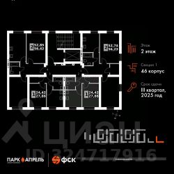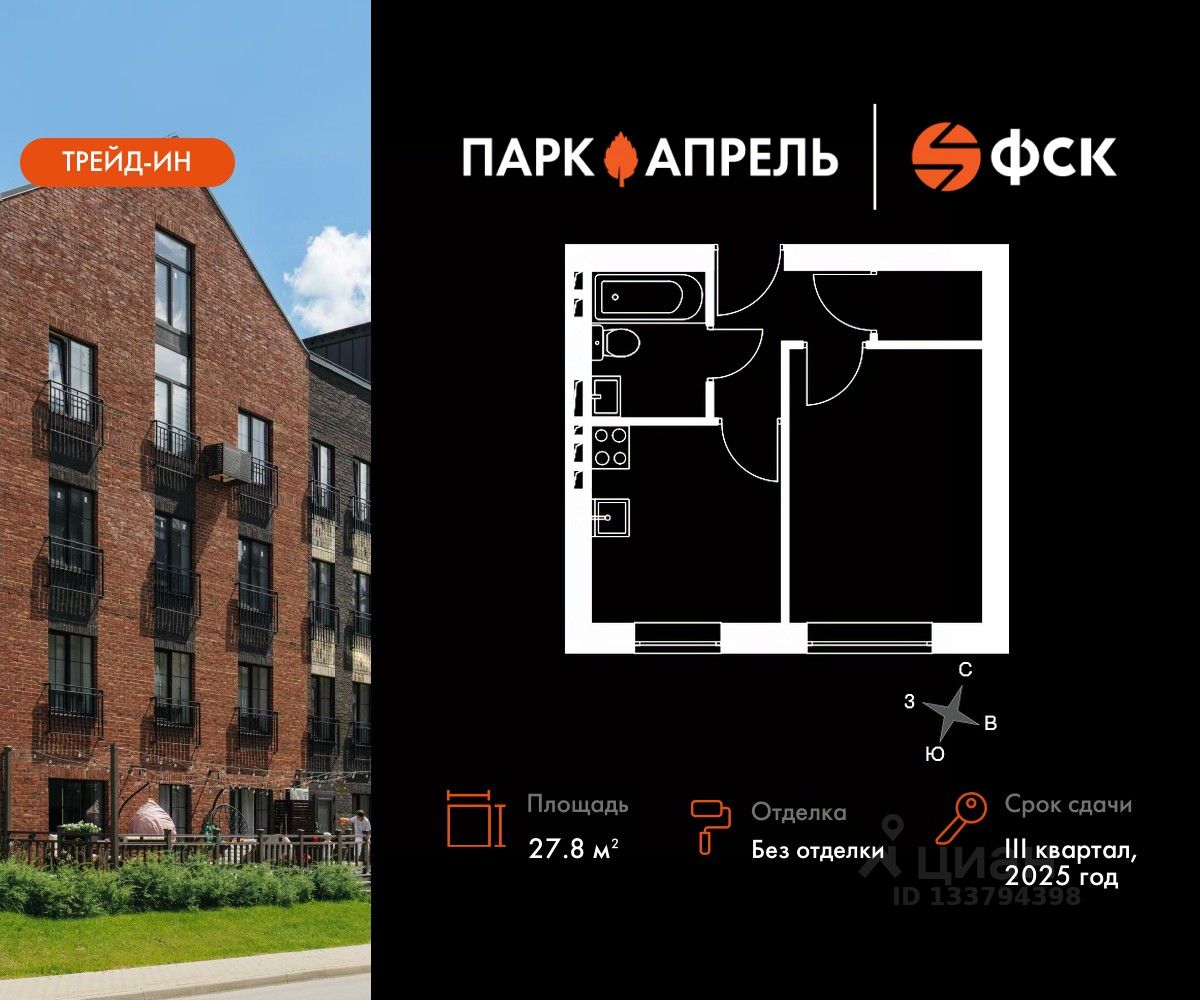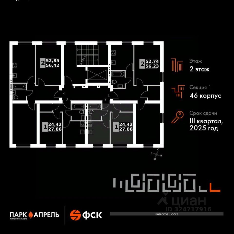 Продаётся 1-к квартира номер 21 в сданном корпусе общей площадью 27.86 кв.м на 2-м этаже 4 этажного дома.