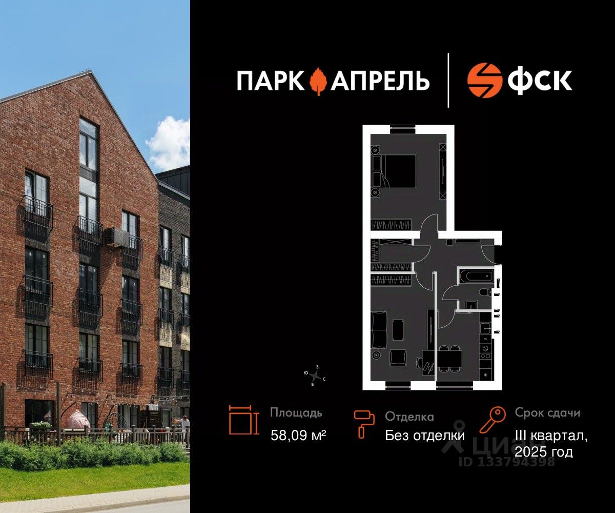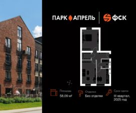 Прямая продажа от застройщика! Загородный жилой комплекс класса Комфорт Плюс. Продаётся 2-к квартира 91 в сданном корпусе общей площадью 58.09 кв.м на 4-м этаже 4 этажного дома. Без отделки. Расположение комплекса: Уникальный жилой комплекс, расположенный в 20 минутах от Москвы по Киевскому шоссе и окруженный первозданным лесом. В Парк Апрель легко наслаждаться жизнью на природе, не отказываясь от привычного уровня комфорта. Это возможно, благодаря уникальному сочетанию преимуществ комплекса. ЖК, окруженный с трех сторон лесом - подарит вам возможность дышать полной грудью и наслаждаться прекрасными видами, а развитая инфраструктура, транспортная доступность и высокий уровень безопасности принесут спокойствие и безмятежность. Транспортная доступность: МКАД в 20 минутах по Киевскому шоссе по современной скоростной трассе. Автобусная остановка в 200-х метрах от дома. 9 маршрутов наземного транспорта, автобусы до станций метро Юго-Западная, Саларьево, Румянцево, Тропарево. 25 минут на МЦД D4 до Киевского вокзала. Внутренняя инфраструктура: Развитая инфраструктура жилого комплекса, включает муниципальную школу, детский сад, торговый центр и другие объекты. Расположение домов тщательно продумано, так что из окон открываются красивые виды на тихие дворики и окружающий лес, а всего за 10 минут на личном или общественном транспорте вы доедете до любой из двадцати школ, поликлиники или современного дворца спорта. Разумеется, в Апрелевке найдутся также торговые комплексы, фитнес-центры и многое другое. Для кровли используется черепица, имеющая отличные тепло- и шумоизоляционные характеристики. Благодаря стенам из керамических на протяжении всего года в доме будет здоровый микроклимат, а облицовка бельгийский кирпичом придает особое очарование фасадам. Вы сможете создать уникальный формат жилья, который подойдет именно вам. Просторная кухня - гостиная, отдельный кабинет для работы, мастер-спальня с гардеробной и ванной - квартира со свободной планировкой позволяет воплотить в жизнь все ваши идеи С трех сторон Парк Апрель окружен лесом и малоэтажной частной застройкой, поблизости отсутствуют вредные производства. В пешей доступности находятся две реки и лесной массив, откуда удачная роза ветров приносит свежий воздух Жителям Парк Апрель доступна развитая инфраструктура Апрелевки: два десятка образовательных учреждений, спортивная школа, современный дворец спорта, поликлиники, фитнес-центры, магазины и торговые комплексы. Все объекты расположены не более, чем в 10 минутах езды на машине.