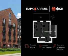 Продаётся 1-к квартира 8 в сданном корпусе общей площадью 67.7 кв.м на 1-м этаже 4 этажного дома. Без отделки.