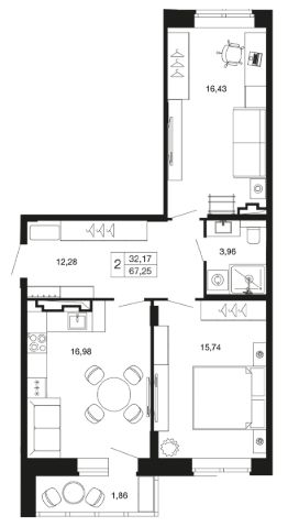 Продаётся 2-комнатная квартира в строящемся доме (Корпус 12), срок сдачи: IV-кв. 2025, общей площадью 67.25 кв.м., на 9 этаже. Расположение, транспортная доступность