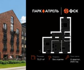 Продаётся 3-к квартира 67 в сданном корпусе общей площадью 73.21 кв.м на 3-м этаже 4 этажного дома. Без отделки.