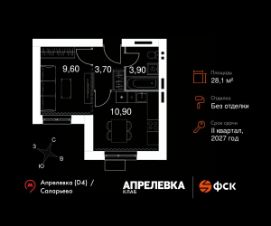 Продаётся 1-к квартира 96 общей площадью 28.1 кв.м на 3-м этаже 5 этажного дома. Без отделки.