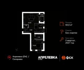 Продаётся 3-к квартира 115 общей площадью 68.8 кв.м на 3-м этаже 5 этажного дома. Без отделки.