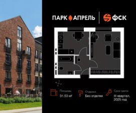 Продаётся 1-к квартира 77 в сданном корпусе общей площадью 31.53 кв.м на 2-м этаже 4 этажного дома. Без отделки.