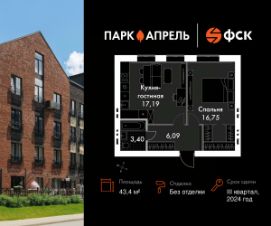 Продаётся 1-к квартира 142 в сданном корпусе общей площадью 43.4 кв.м на 2-м этаже 4 этажного дома. Без отделки.