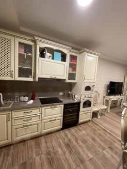 Большая, просторная кухня-гостиная, с раскладываемым диваном. Кухня, из дерева, со всем необходимым оснащением - плита, микроволновая печь, духовой шкаф, посудомоечная машина. Есть даже встроенный винный шкаф! В коридоре стоит большой шкаф для всех - всех вещей, комод, обувница. В ванной комнате стиральная машина, сама ванная, туалет