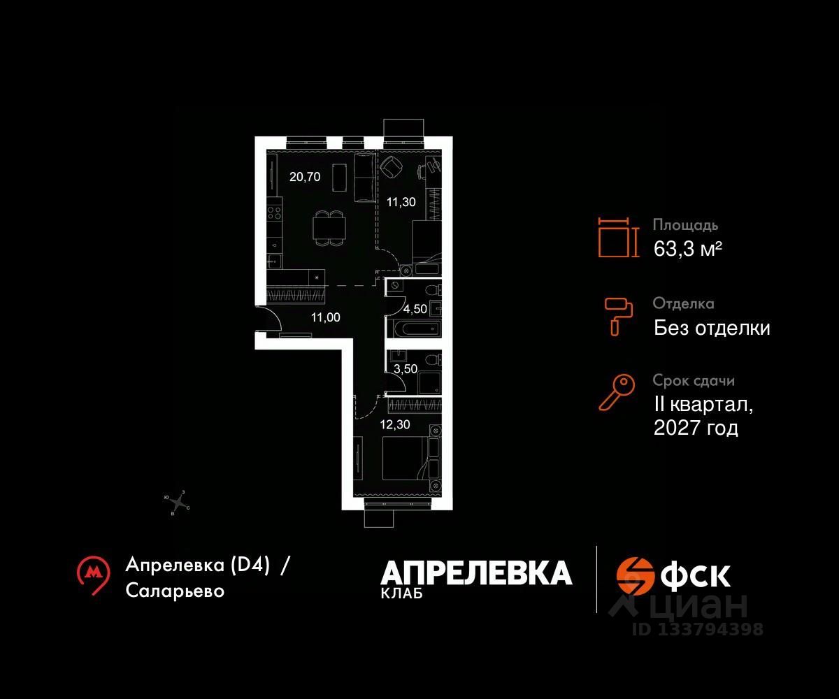 Продаётся 3-к квартира 179 общей площадью 63.3 кв.м на 3-м этаже 5 этажного дома. Без отделки.
