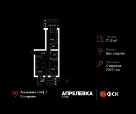 Продаётся 3-к квартира 5 общей площадью 71.8 кв.м на 1-м этаже 5 этажного дома. Без отделки.