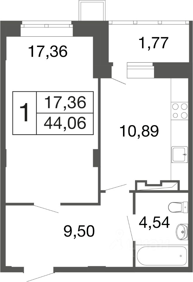 Общая площадь44,06 м²