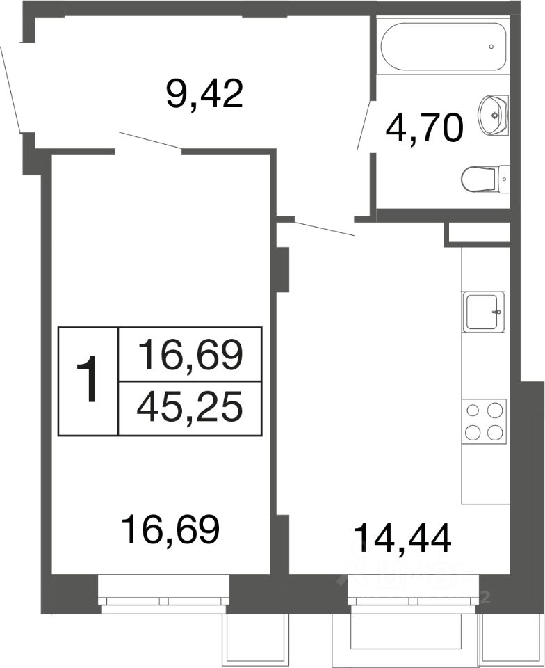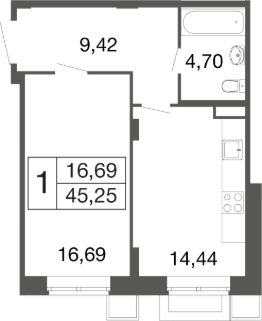 1-комн. квартира в ЖК комфорт-класса "Времена года" на 1 этаже в 9 этажном корпусе 11. Общая площадь: 45.25 кв.м., жилая: 16.69 кв.м. Высота потолков 2.76 м. "Времена года" современный жилой комплекс комфорт-класса, расположенный в тихом и зеленом подмосковном городе Апрелевка, в 1 минуте пешком от станции МЦД-4 "Победа".