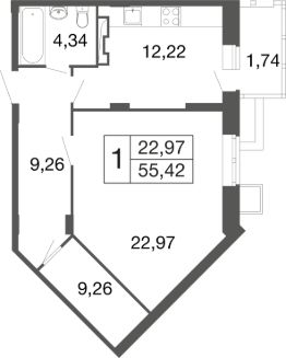 1-комн. квартира в ЖК комфорт-класса "Времена года" на 1 этаже в 9 этажном корпусе 11. Общая площадь: 55.42 кв.м., жилая: 22.97 кв.м. Высота потолков 2.76 м. "Времена года" современный жилой комплекс комфорт-класса, расположенный в тихом и зеленом подмосковном городе Апрелевка, в 1 минуте пешком от станции МЦД-4 "Победа".