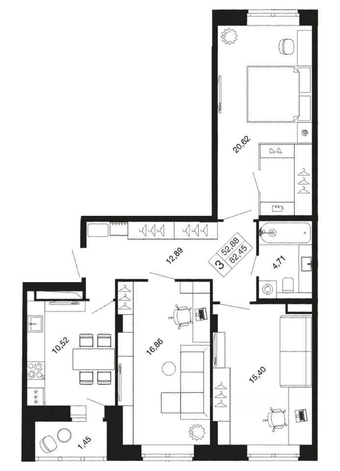 3-комн. квартира в ЖК комфорт-класса "Времена года" на 6 этаже в 9 этажном корпусе 11. Общая площадь: 82.45 кв.м., жилая: 52.88 кв.м. Высота потолков 2.76 м. "Времена года" современный жилой комплекс комфорт-класса, расположенный в тихом и зеленом подмосковном городе Апрелевка, в 1 минуте пешком от станции МЦД-4 "Победа".