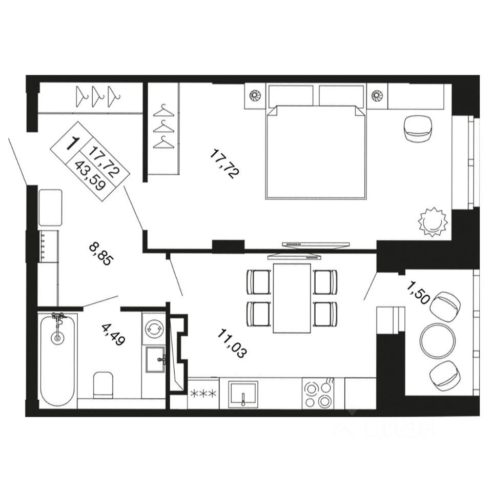 1-комн. квартира в ЖК комфорт-класса "Времена года" на 9 этаже в 9 этажном корпусе 11. Общая площадь: 43.59 кв.м., жилая: 17.72 кв.м. Высота потолков 2.76 м. "Времена года" современный жилой комплекс комфорт-класса, расположенный в тихом и зеленом подмосковном городе Апрелевка, в 1 минуте пешком от станции МЦД-4 "Победа".