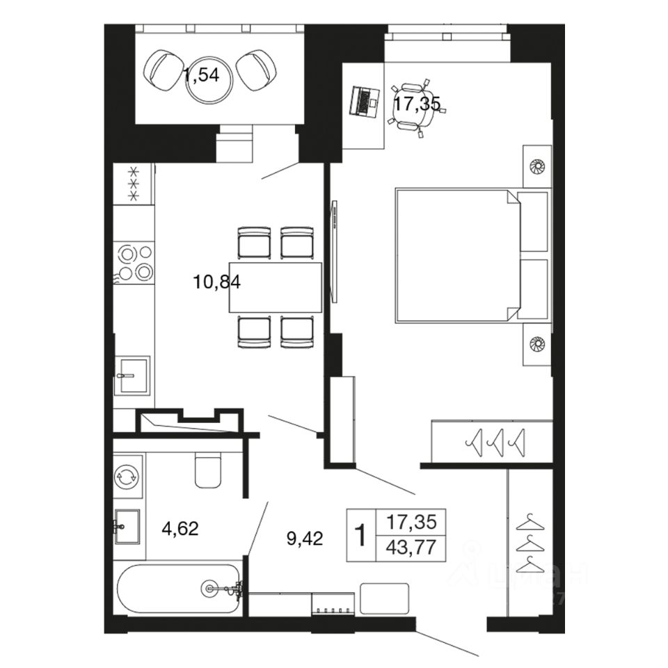1-комн. квартира в ЖК комфорт-класса "Времена года" на 8 этаже в 9 этажном корпусе 11. Общая площадь: 43.77 кв.м., жилая: 17.35 кв.м. Высота потолков 2.76 м. "Времена года" современный жилой комплекс комфорт-класса, расположенный в тихом и зеленом подмосковном городе Апрелевка, в 1 минуте пешком от станции МЦД-4 "Победа".