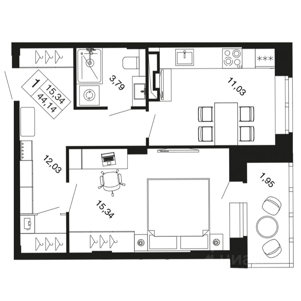 1-комн. квартира в ЖК комфорт-класса "Времена года" на 7 этаже в 9 этажном корпусе 11. Общая площадь: 44.14 кв.м., жилая: 15.34 кв.м. Высота потолков 2.76 м. "Времена года" современный жилой комплекс комфорт-класса, расположенный в тихом и зеленом подмосковном городе Апрелевка, в 1 минуте пешком от станции МЦД-4 "Победа".