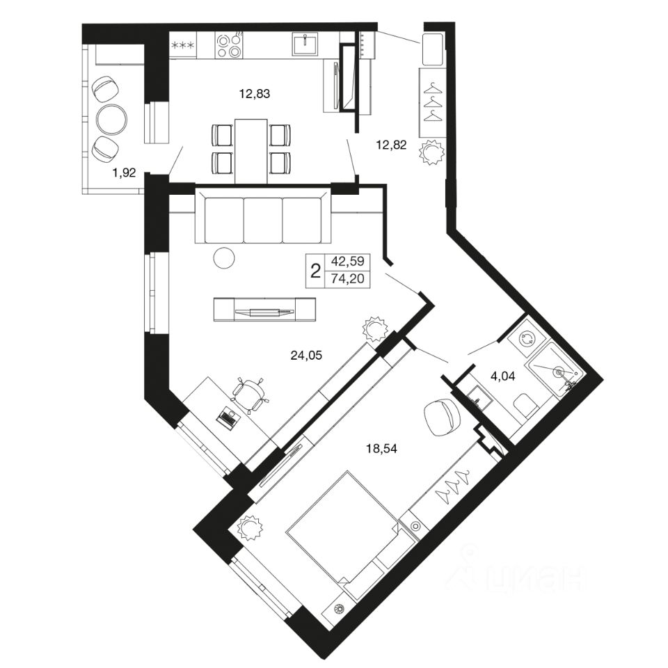 2-комн. квартира в ЖК комфорт-класса "Времена года" на 9 этаже в 9 этажном корпусе 11. Общая площадь: 74.2 кв.м., жилая: 42.59 кв.м. Высота потолков 2.76 м. "Времена года" современный жилой комплекс комфорт-класса, расположенный в тихом и зеленом подмосковном городе Апрелевка, в 1 минуте пешком от станции МЦД-4 "Победа".