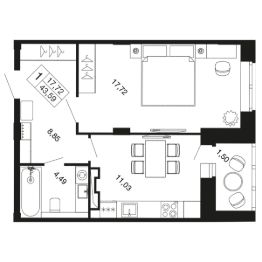 1-комн. квартира в ЖК комфорт-класса "Времена года" на 6 этаже в 9 этажном корпусе 11. Общая площадь: 43.59 кв.м., жилая: 17.72 кв.м. Высота потолков 2.76 м. "Времена года" современный жилой комплекс комфорт-класса, расположенный в тихом и зеленом подмосковном городе Апрелевка, в 1 минуте пешком от станции МЦД-4 "Победа".