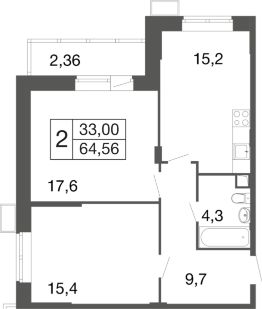 2-комн. квартира в ЖК комфорт-класса "Времена года" на 1 этаже в 9 этажном корпусе 2. Общая площадь: 64.56 кв.м., жилая: 33.00 кв.м. Высота потолков 2.76 м. "Времена года" современный жилой комплекс комфорт-класса, расположенный в тихом и зеленом подмосковном городе Апрелевка, в 1 минуте пешком от станции МЦД-4 "Победа".