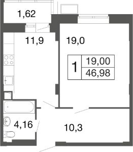 1-комн. квартира в ЖК комфорт-класса "Времена года" на 1 этаже в 9 этажном корпусе 2. Общая площадь: 46.98 кв.м., жилая: 19.00 кв.м. Высота потолков 2.76 м. "Времена года" современный жилой комплекс комфорт-класса, расположенный в тихом и зеленом подмосковном городе Апрелевка, в 1 минуте пешком от станции МЦД-4 "Победа".