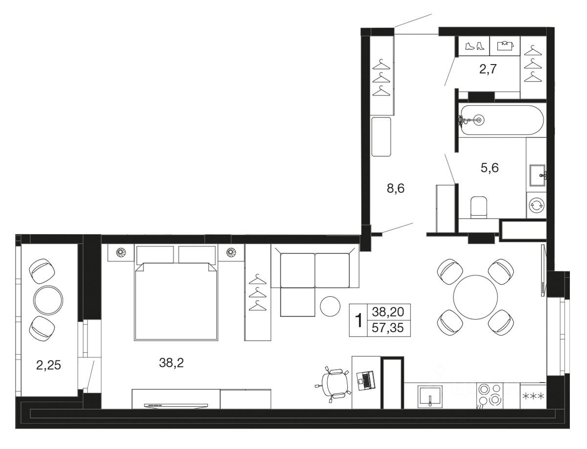 квартира-студия в ЖК комфорт-класса "Времена года" на 7 этаже в 9 этажном корпусе 2. Общая площадь: 57.35 кв.м., жилая: 25.74 кв.м. Высота потолков 2.76 м. "Времена года" современный жилой комплекс комфорт-класса, расположенный в тихом и зеленом подмосковном городе Апрелевка, в 1 минуте пешком от станции МЦД-4 "Победа".