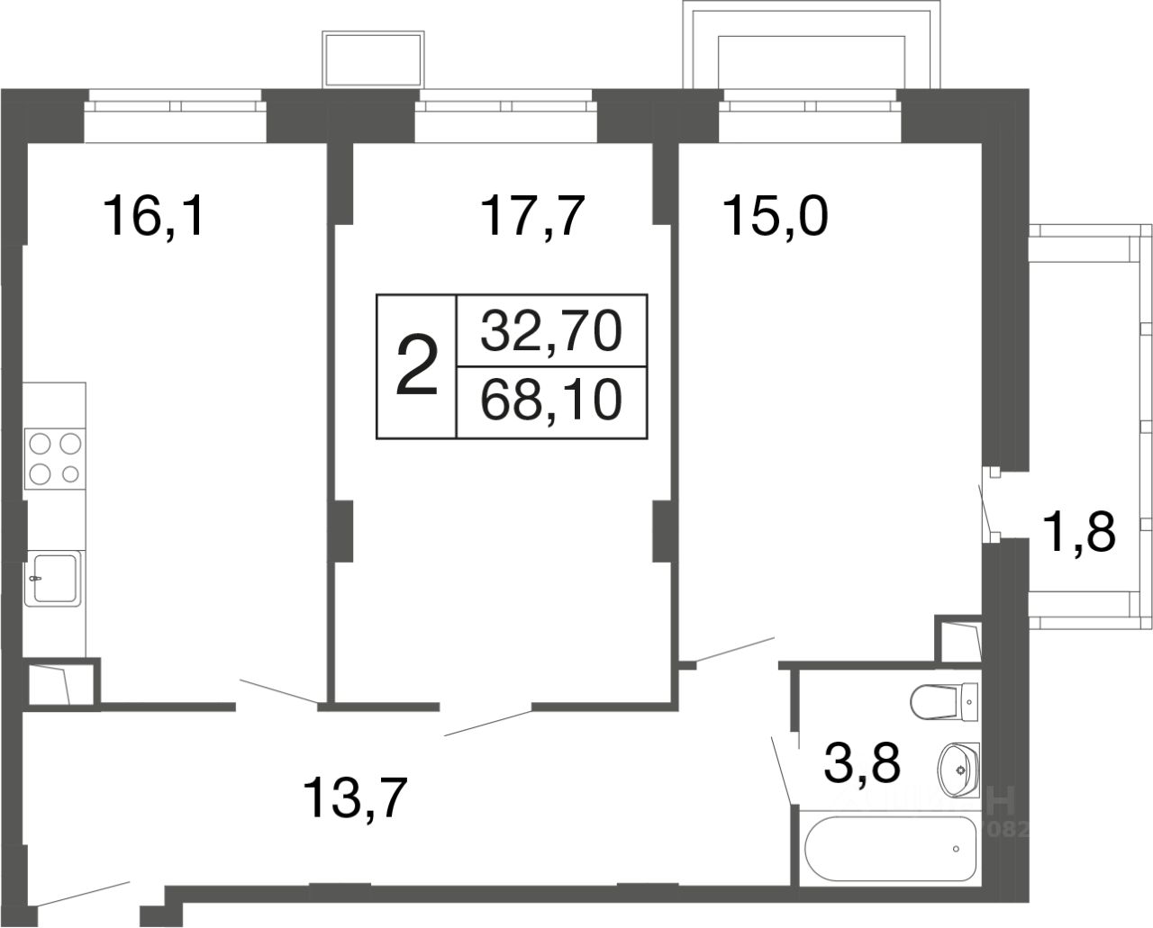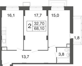 2-комн. квартира в ЖК комфорт-класса "Времена года" на 1 этаже в 9 этажном корпусе 2. Общая площадь: 68.1 кв.м., жилая: 32.70 кв.м. Высота потолков 2.76 м. "Времена года" современный жилой комплекс комфорт-класса, расположенный в тихом и зеленом подмосковном городе Апрелевка, в 1 минуте пешком от станции МЦД-4 "Победа".