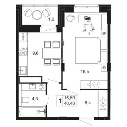 1-комн. квартира в ЖК комфорт-класса "Времена года" на 9 этаже в 9 этажном корпусе 2. Общая площадь: 40.4 кв.м., жилая: 16.50 кв.м. Высота потолков 2.76 м. "Времена года" современный жилой комплекс комфорт-класса, расположенный в тихом и зеленом подмосковном городе Апрелевка, в 1 минуте пешком от станции МЦД-4 "Победа".