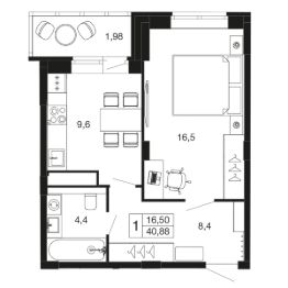 1-комн. квартира в ЖК комфорт-класса "Времена года" на 7 этаже в 9 этажном корпусе 2. Общая площадь: 40.3 кв.м., жилая: 16.50 кв.м. Высота потолков 2.76 м. "Времена года" современный жилой комплекс комфорт-класса, расположенный в тихом и зеленом подмосковном городе Апрелевка, в 1 минуте пешком от станции МЦД-4 "Победа".