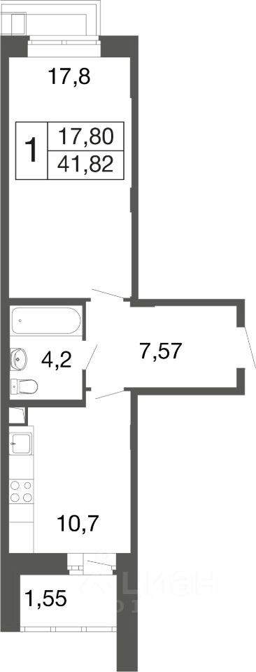 1-комн. квартира в ЖК комфорт-класса "Времена года" на 1 этаже в 9 этажном корпусе 2. Общая площадь: 41.82 кв.м., жилая: 17.80 кв.м. Высота потолков 2.76 м. "Времена года" современный жилой комплекс комфорт-класса, расположенный в тихом и зеленом подмосковном городе Апрелевка, в 1 минуте пешком от станции МЦД-4 "Победа".