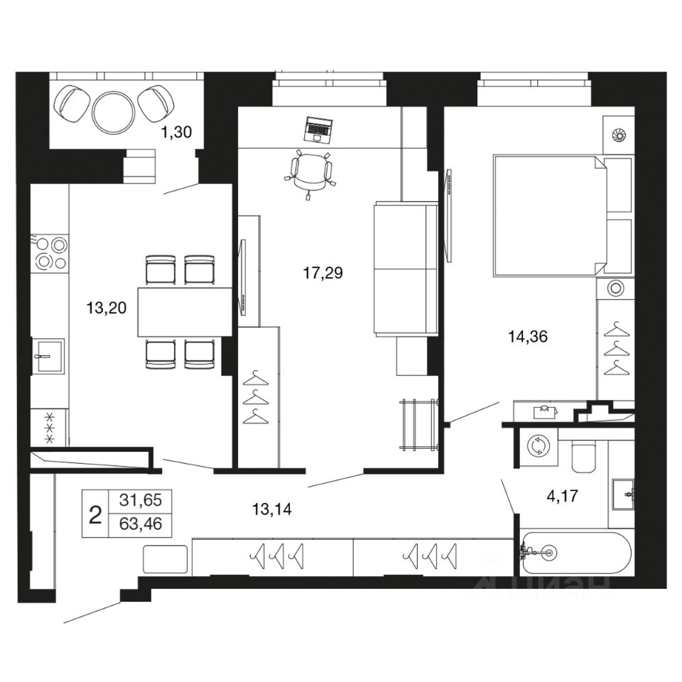 2-комн. квартира в ЖК комфорт-класса "Времена года" на 2 этаже в 9 этажном корпусе 12. Общая площадь: 63.46 кв.м., жилая: 31.65 кв.м. Высота потолков 2.76 м. "Времена года" современный жилой комплекс комфорт-класса, расположенный в тихом и зеленом подмосковном городе Апрелевка, в 1 минуте пешком от станции МЦД-4 "Победа".