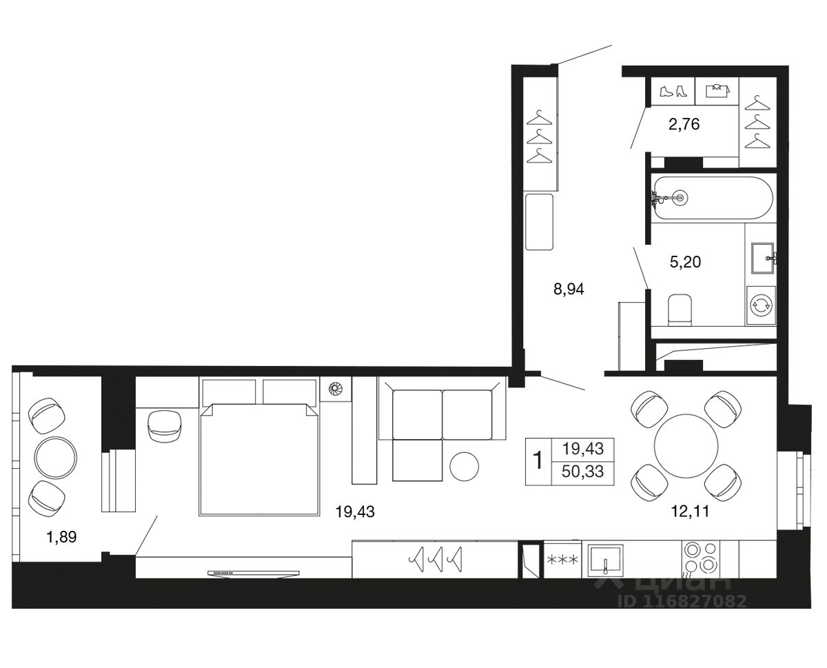квартира-студия в ЖК комфорт-класса "Времена года" на 5 этаже в 9 этажном корпусе 12. Общая площадь: 50.33 кв.м., жилая: 19.43 кв.м. Высота потолков 2.76 м. "Времена года" современный жилой комплекс комфорт-класса, расположенный в тихом и зеленом подмосковном городе Апрелевка, в 1 минуте пешком от станции МЦД-4 "Победа".