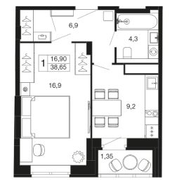 1-комн. квартира в ЖК комфорт-класса "Времена года" на 9 этаже в 9 этажном корпусе 2. Общая площадь: 38.65 кв.м., жилая: 16.90 кв.м. Высота потолков 2.76 м. "Времена года" современный жилой комплекс комфорт-класса, расположенный в тихом и зеленом подмосковном городе Апрелевка, в 1 минуте пешком от станции МЦД-4 "Победа".