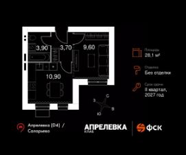 Продаётся 1-к квартира 95 общей площадью 28.1 кв.м на 3-м этаже 5 этажного дома. Без отделки.