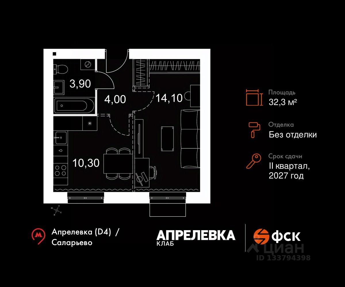 Продаётся 1-к квартира 165 общей площадью 32.3 кв.м на 5-м этаже 5 этажного дома. Без отделки.